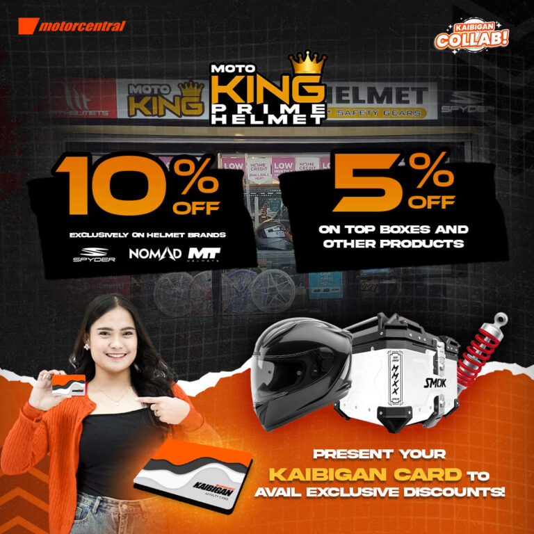 Handa ka na bang mag-upgrade ng riding gear? Mas pina-level up ng Motorcentral ang pagiging Kaibigan Member sa pakikipag-partner nito sa Moto King Prime Helmet—isang go-to shop para sa quality helmets at motorcycle accessories na swak sa mga riders na priority ang safety at style!